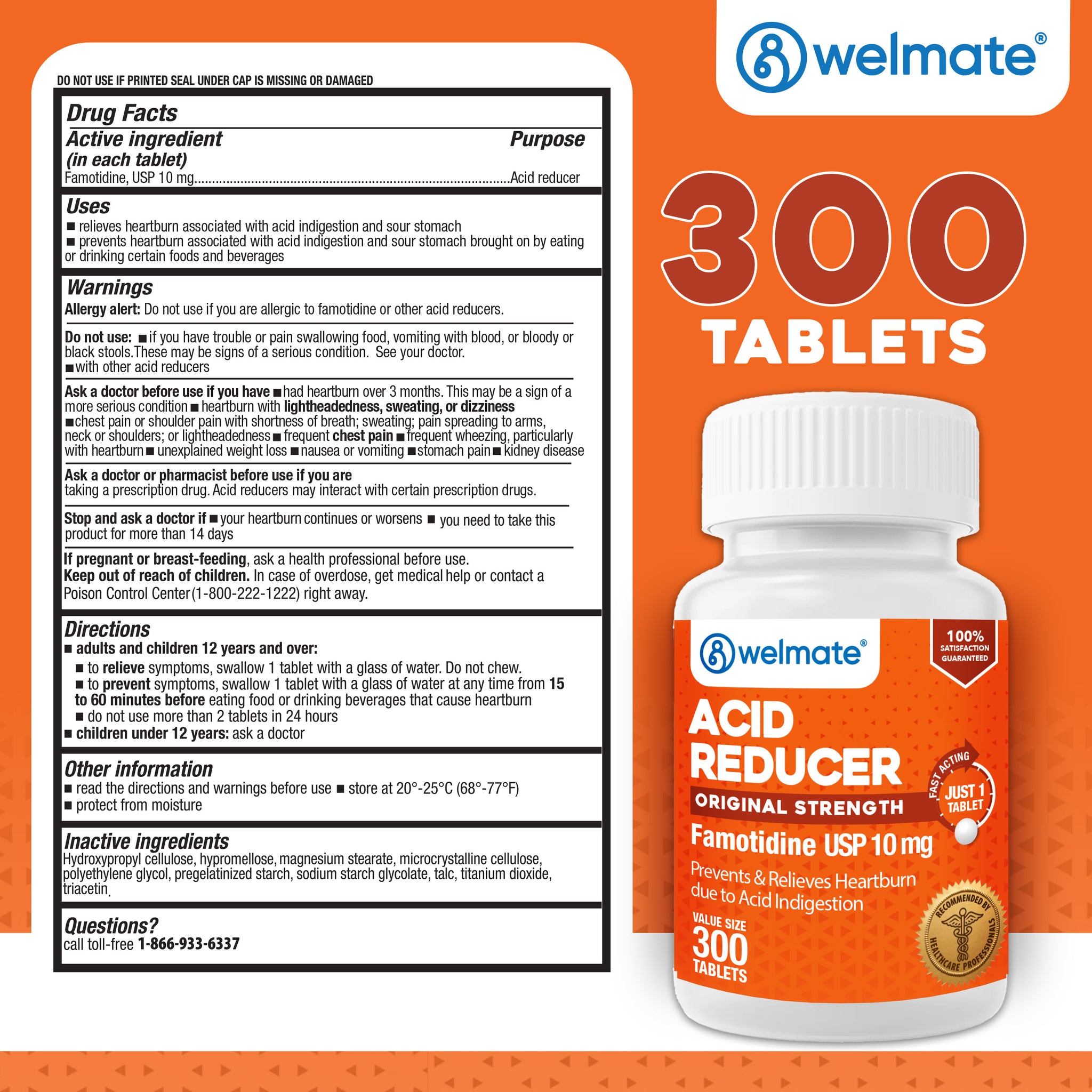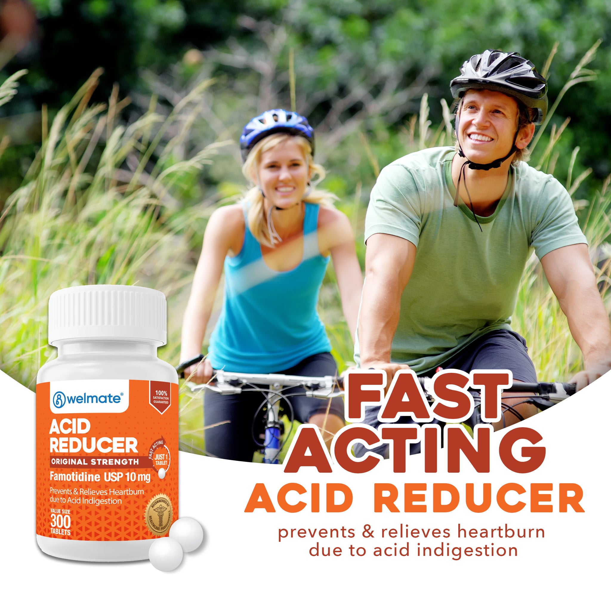 Looking to prevent and relieve heartburn? With Welmate's Acid Reducer tablets, you can enjoy eating and drinking without discomfort from acid and sour stomach. Take one tablet with a glass of water to relieve or prevent heartburn. Gives same relief as Pepcid AC.