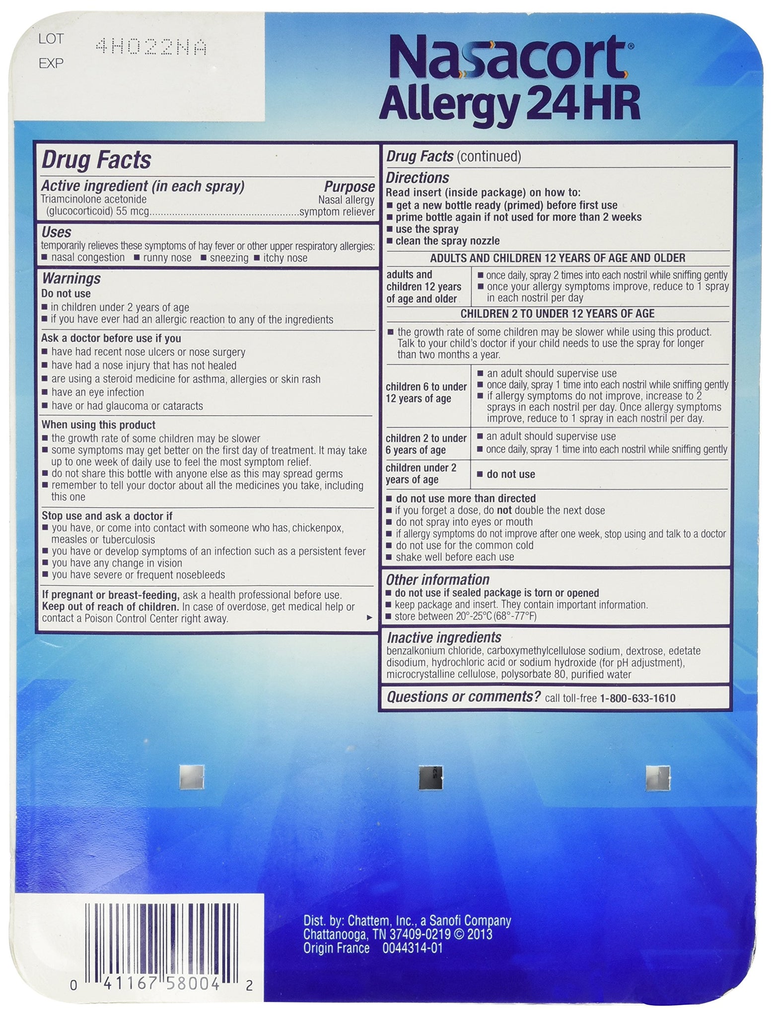 Looking for relief from nasal congestion associated with allergies? With Nasacort Allergy 24-hour spray, you can have long lasting relief from nasal congestion, sneezing, runny and itchy nose.