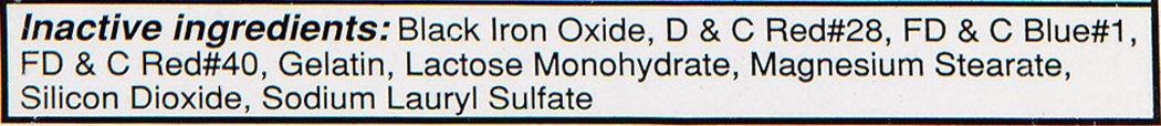 FERROSOFERRIC OXIDE D&C RED NO. 28 FD&C BLUE NO. 1 FD&C RED NO. 40 GELATIN LACTOSE MONOHYDRATE MAGNESIUM STEARATE SILICON DIOXIDE SODIUM LAURYL SULFATE