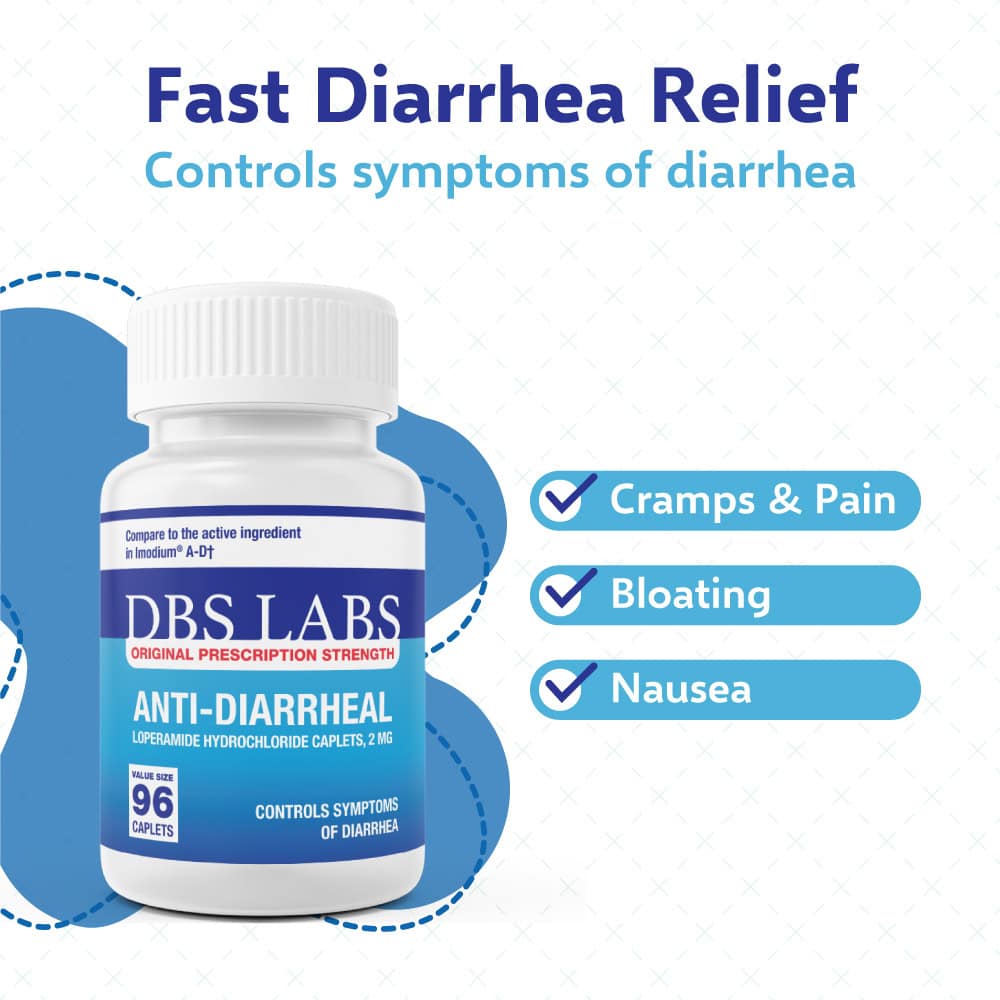 Experience quick relief with DBS Labs Anti-Diarrheal caplets that helps alleviate pain and discomfort brought about by symptoms of diarrhea. Specifically formulated with Loperamide HCl, these anti-diarrheal caplets can be compared to the active ingredient in Imodium A-D. Do not take more than 4 caplets in 24 hours.