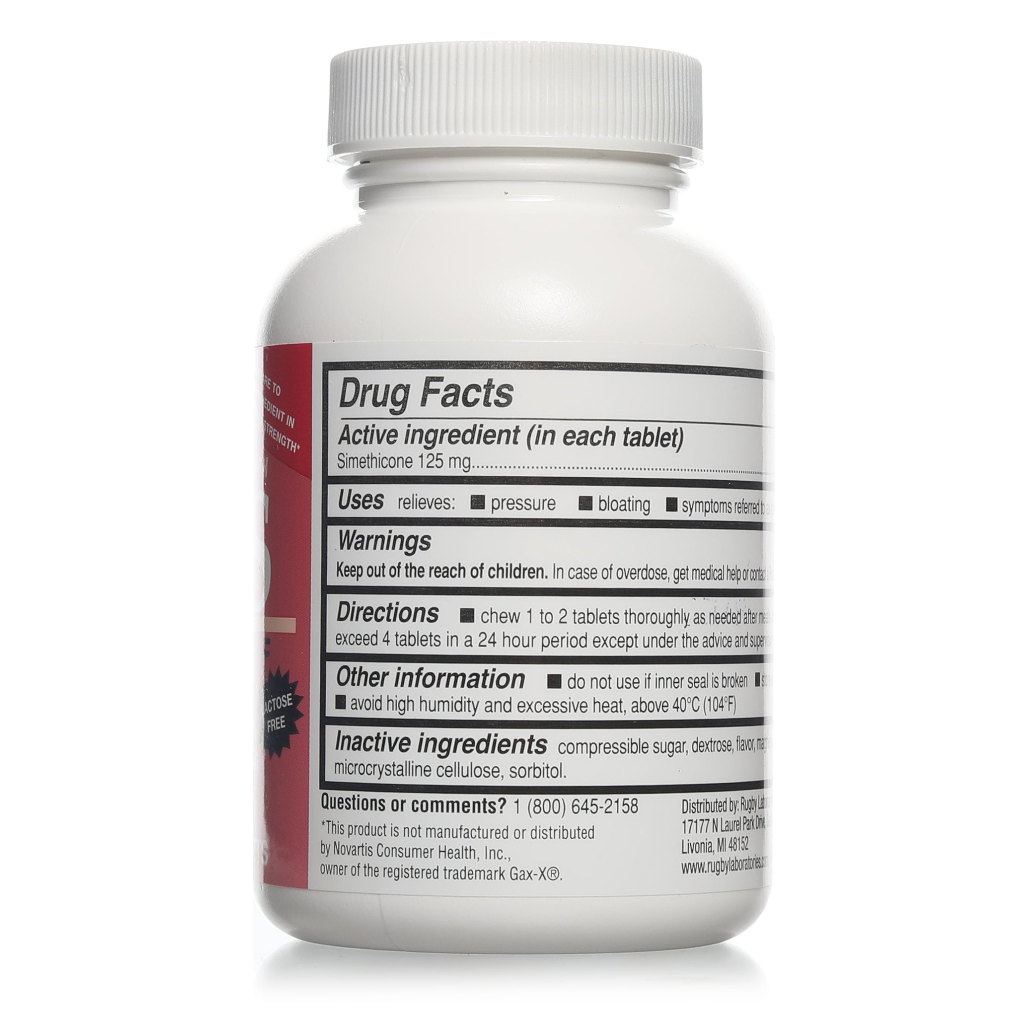 RUGBY Extra Strength Gas Relief - Simethicone 125mg, 60 Chewable Tablets (Generic Gas-X)
