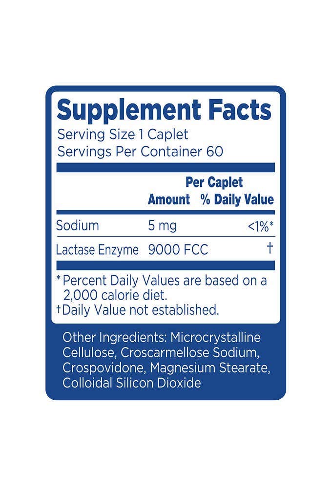 Sodium 5 mg, Lactase Enzyme 9000 FCC