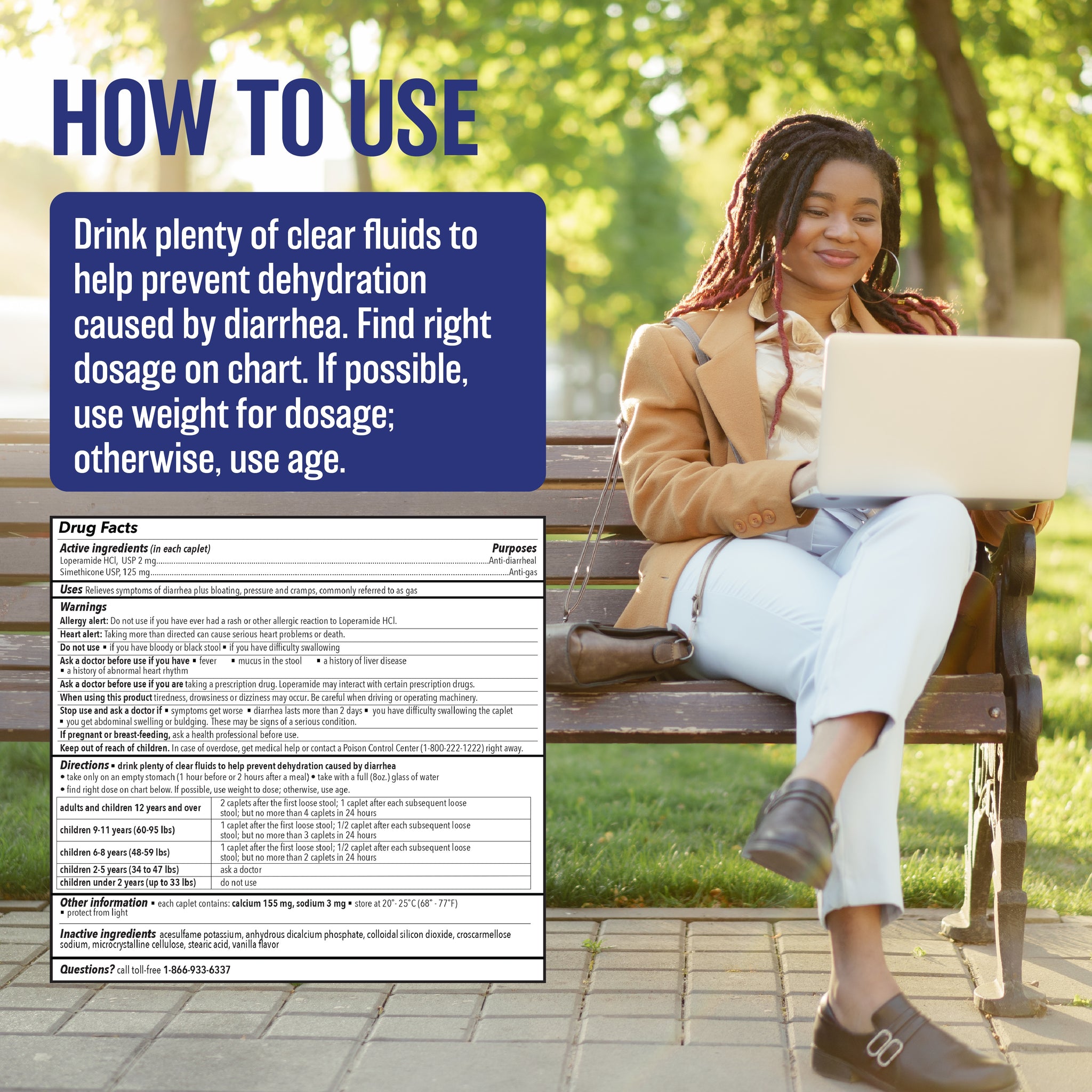 • Active Ingredients – Contains Loperamide Hydrochloride 2mg, to help fight symptoms of diarrhea, plus Simethicone 125mg, to help combat gas and related symptoms.