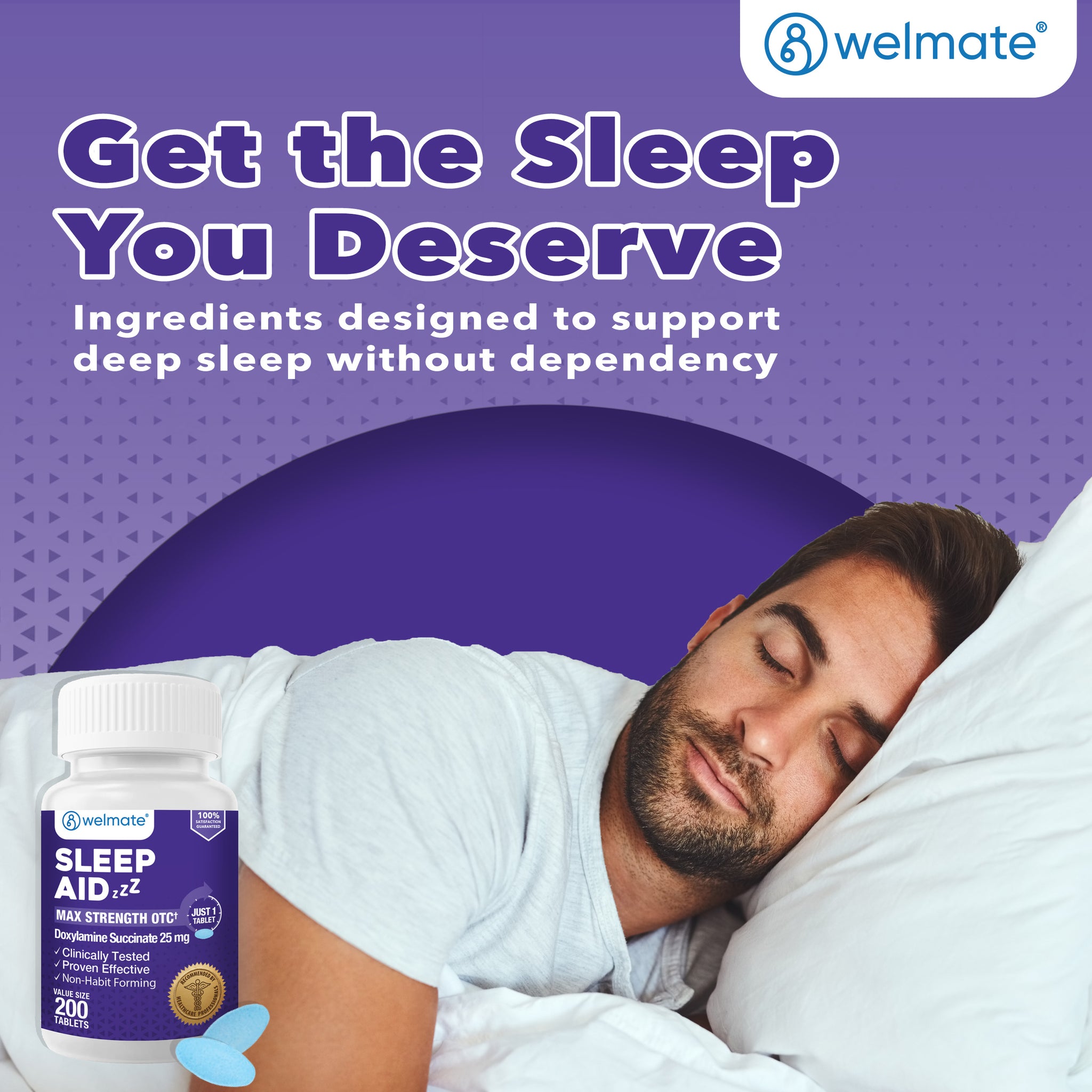 • FOCUS ON SLEEP: With a single one-tablet dose, Welmate Sleep Aid Tablets with doxylamine succinate 25 mg as the active ingredient help reduce difficulty in falling asleep. This nighttime sleep aid contains no pain reliever