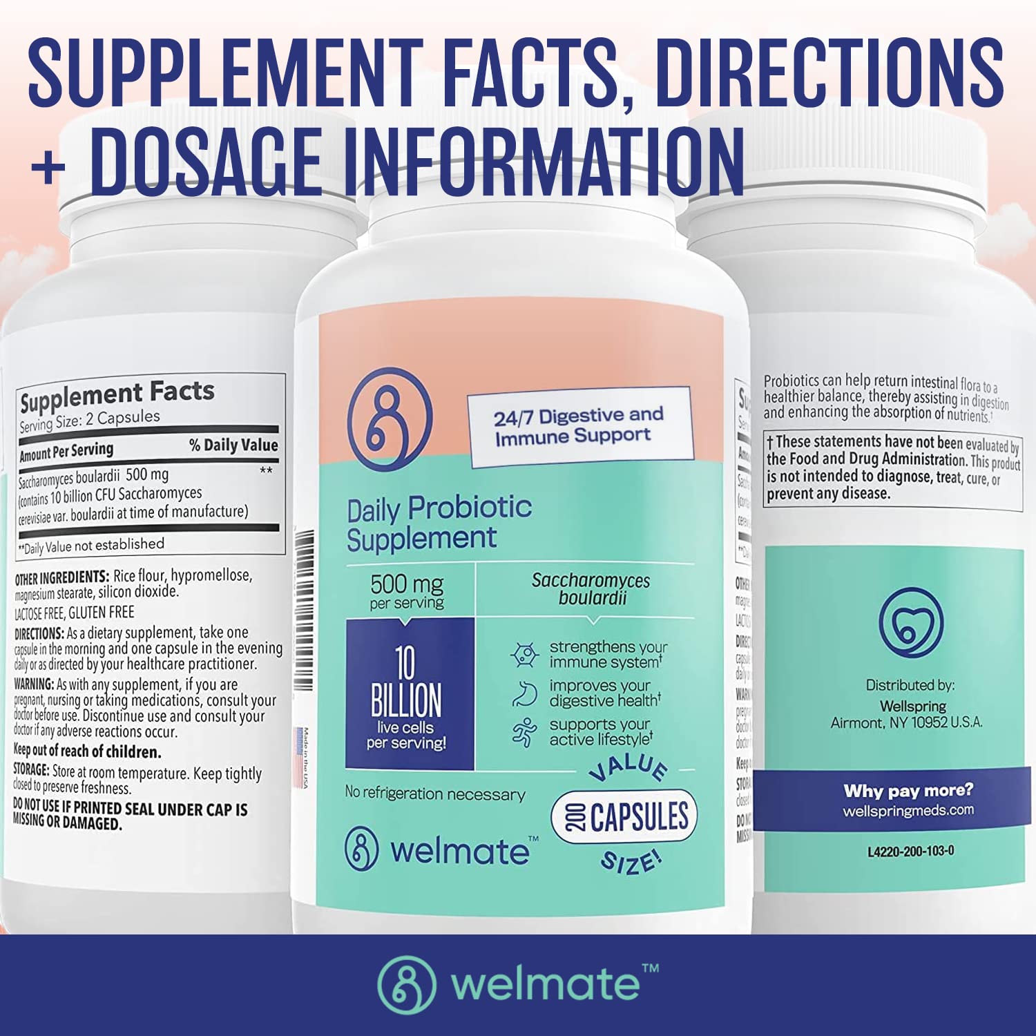Welmate's probiotic supplements are formulated with Saccharomyces Boulardii, a probiotic known to promote a healthier digestive tract. This product is vegan, dairy-free, organic, gluten-free, and non-GMO. Compare to the active ingredient in Florastor.