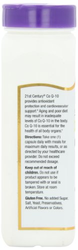 21st Century COQ-10 provides antioxidant protection and cardiovascular support. Aging and poor diet may result in inadequate levels of COQ-10 in the body. CO Q-10 is essential for the health of all body organs. Gluten free. No added sugar, salt, yeast, preservatives, artificial flavors or colors. This product is not intended to diagnose, treat, cure or prevent any disease.