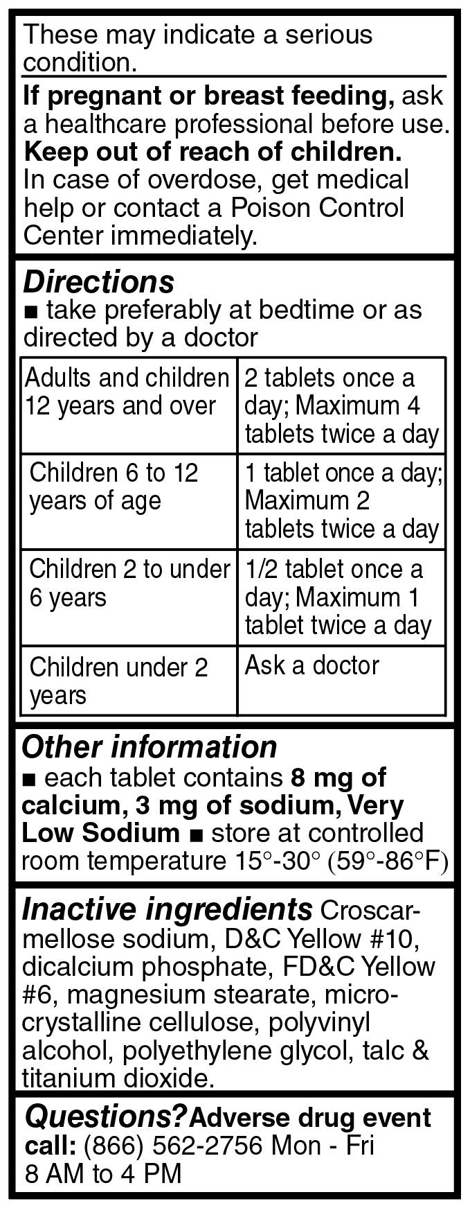 croscaremellose sodium, D&C Yellow #10, dicalcium Phosphate, FD&C Yellow #6, magnesium stearate, microcrystalline cellulose, polyvinyl alcohol, polyethylene glycol, talc, titanium dioxide