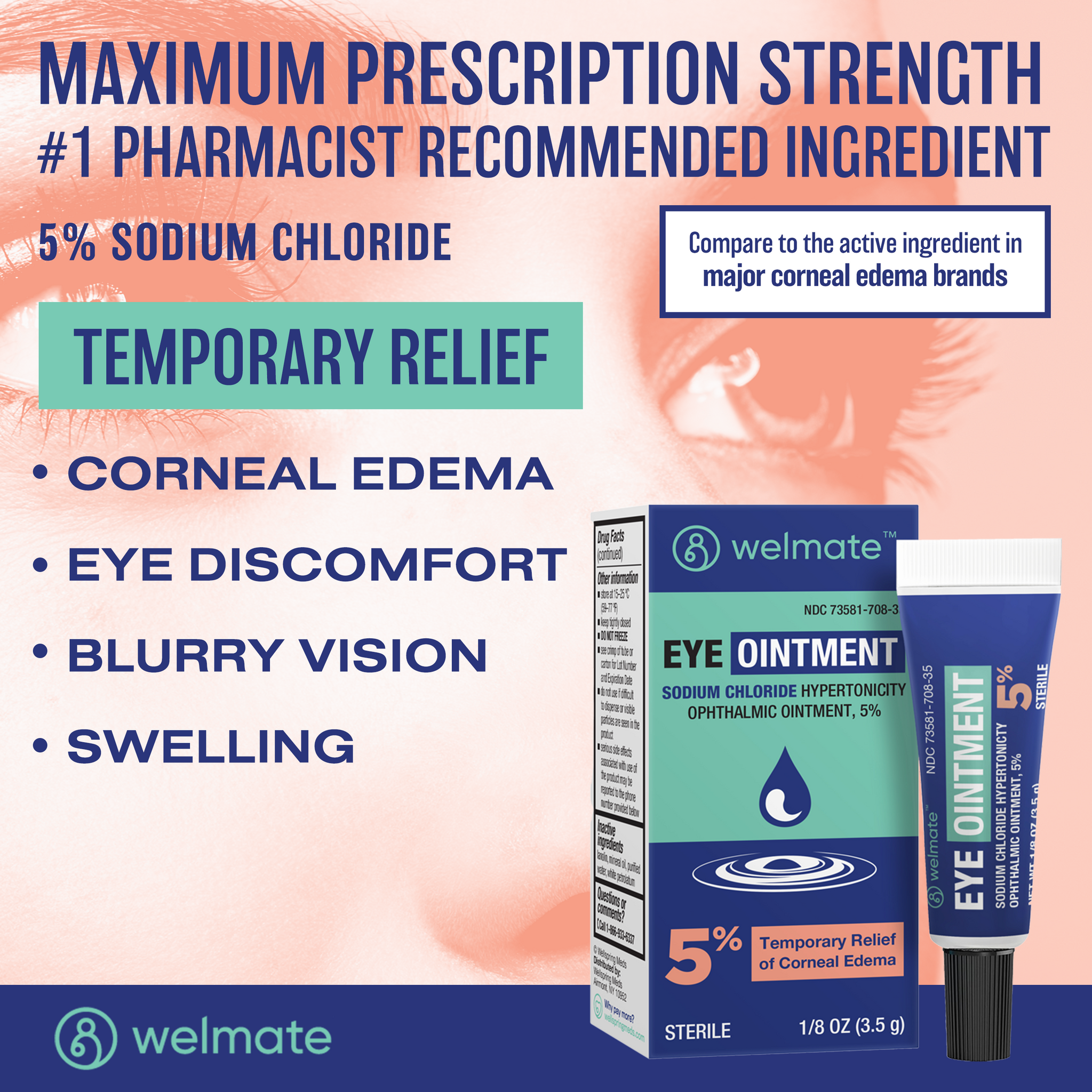 Looking for relief from Corneal Edema? With Welmate's Eye Ointment, you can get temporary relief of corneal edema. Only a small amount needed, can be reapplied every 3 to 4 hours or as directed by a doctor.